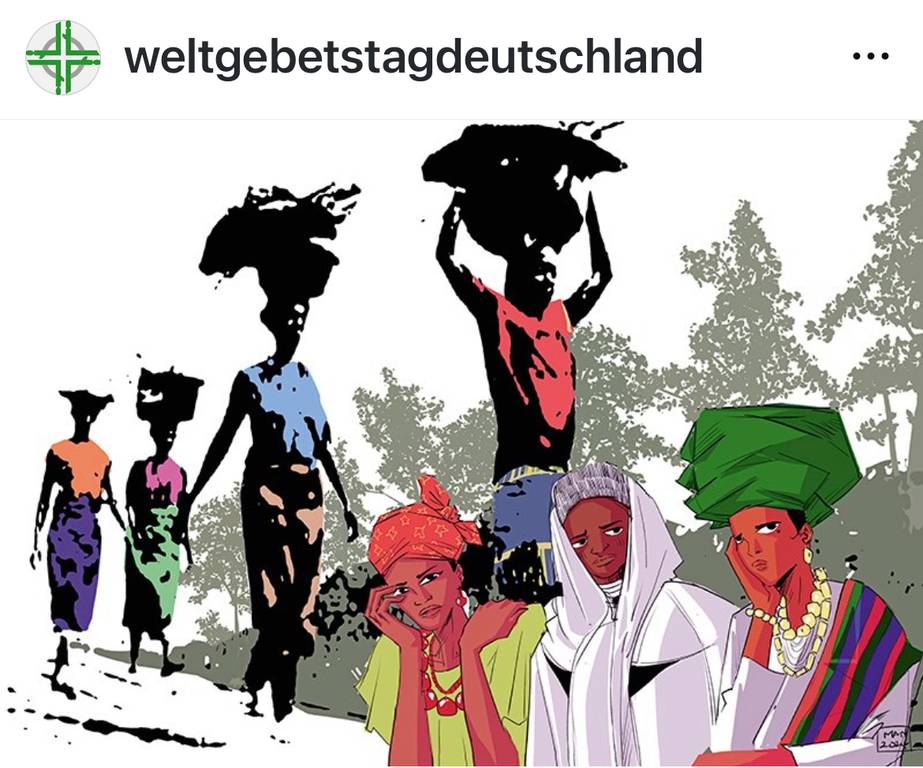 „In einer Zeit, in der Menschen auf der ganzen Welt schwere Lasten zu tragen haben, bieten unsere nigerianischen Schwestern tiefgründige Erkenntnisse darüber, wie man in Gott Ruhe und Erholung findet“, schreibt Katie Reimer, Geschäftsführerin des Internationalen Komitees. Wenn Frauen in ländlichen Gegenden zu Fuß unterwegs sind, begeben sie sich auf einen gefährlichen Weg. Denn sie müssen Übergriffe und Hindernisse befürchten. Diese Situation greift das Motiv des diesjährigen Weltgebetstags ebenso auf, wie die vielfältigen Kulturen des Landes, die im Vordergrund in jeweils typischer, traditioneller Kleidung von der jungen nigerianischen Künstlerin Gift Amarachi Ottah dargestellt sind. Lebensrealitäten, die uns hierzulande eher fremd sind. Um so wertvoller ist es, mehr vom Alltag von Frauen und Mädchen in diesem Land kennenzulernen.